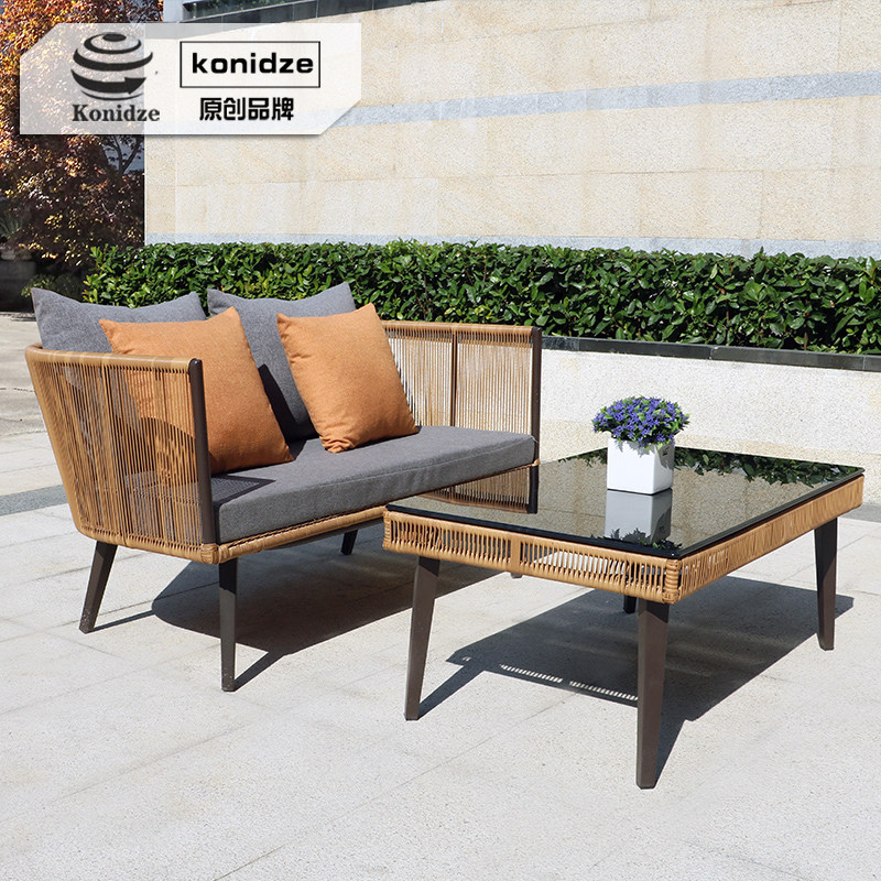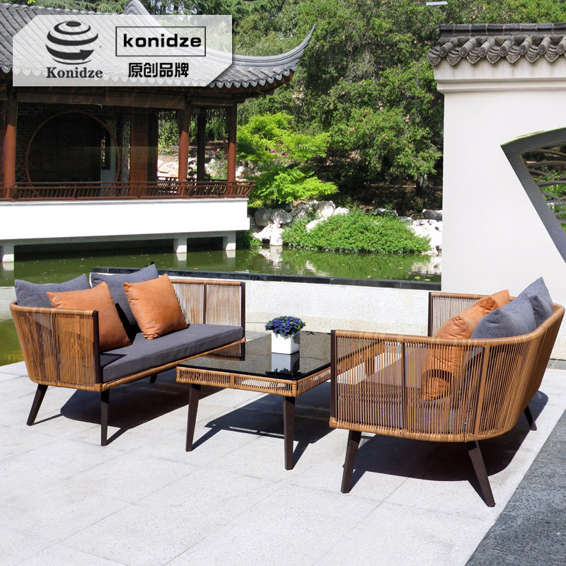 Outdoor sofa designer Chinese rattan sofa single double coffee table combination greenhouse leisure courtyard rattan chair