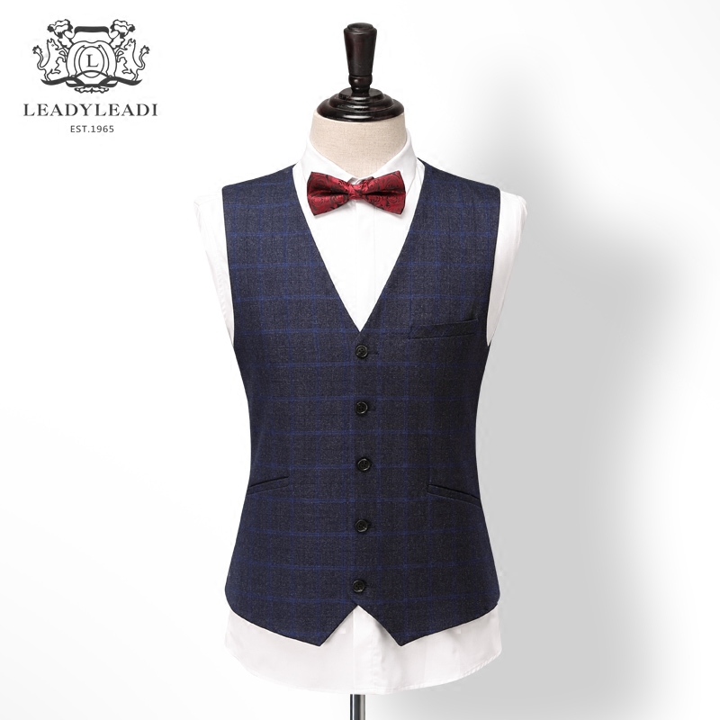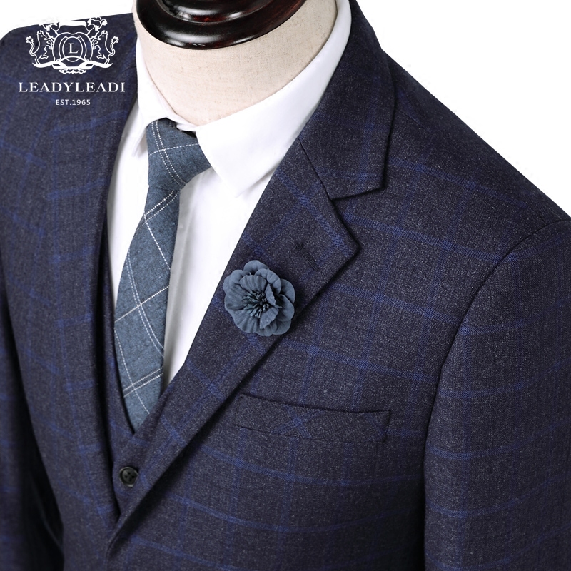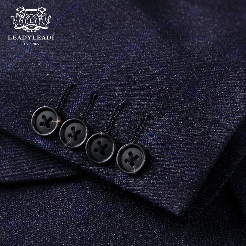Men's suit suit Male thick professional formal middle-aged business suit Korean version of blue plaid handsome casual