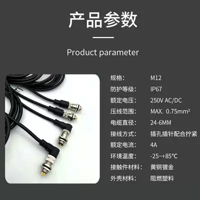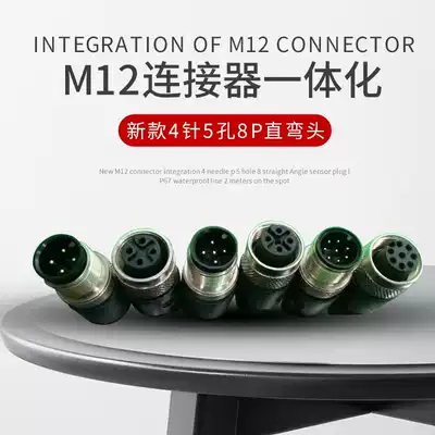 M12 standard integrated cable 4-pin 5-hole 8P12-core straight elbow sensing line ip67 waterproof connector 2 meters spot