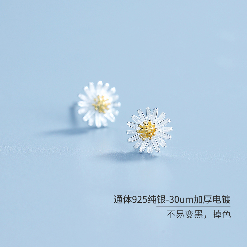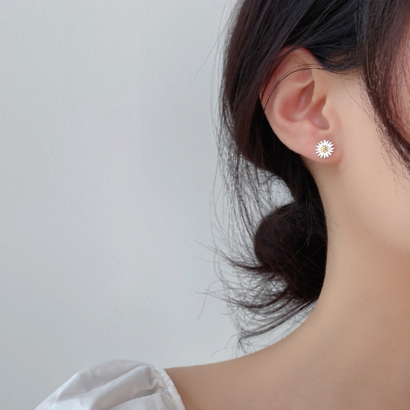 925 pure silver small daisy flower with ear pin woman 2021 New tide crumbles earrings minimalist Sunflower Earrings