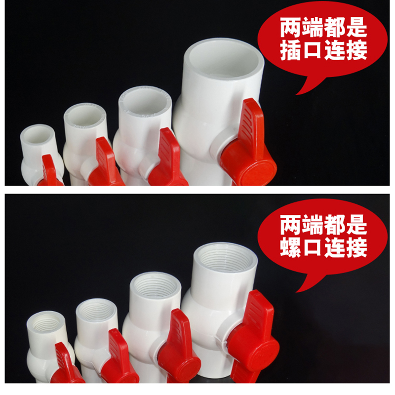 PVC ball valve switch screw mouth water supply pipe 20 25 32 40 50 63 75 90 110 160 gray