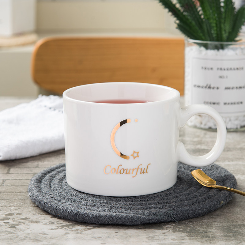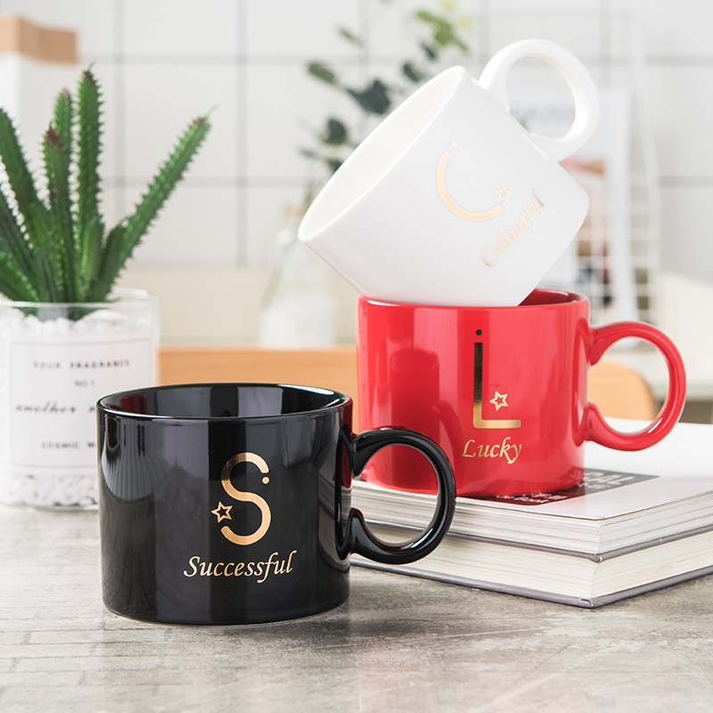 Gold Letter Cup Coffee Cup Markcup Milk Cup Water Cup Ceramic Cups Ceramic Cups Porcelain Cups Office Water Cups