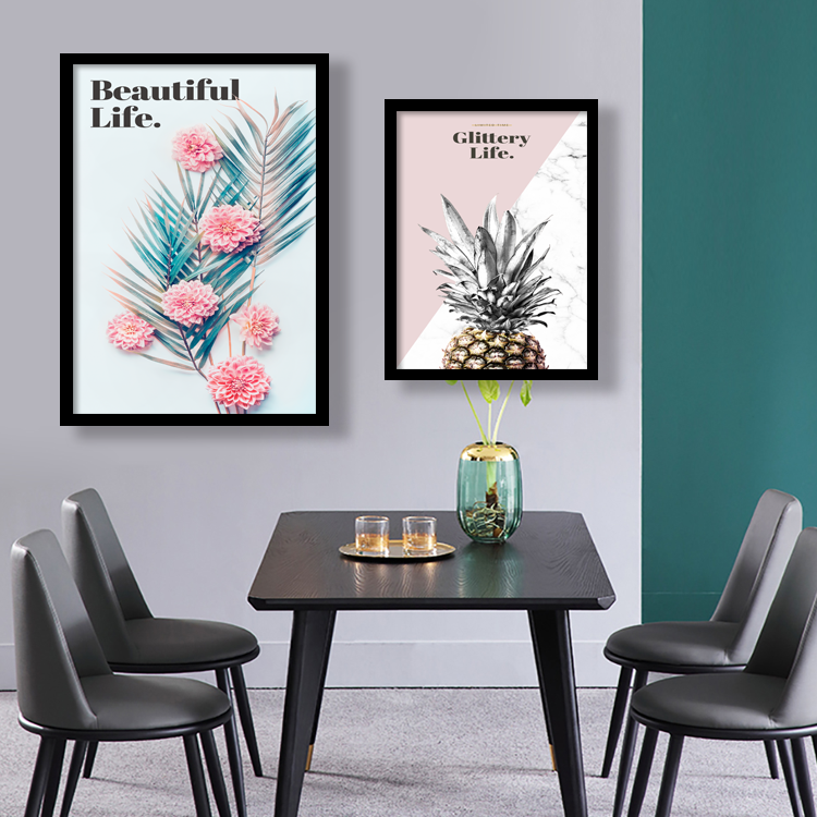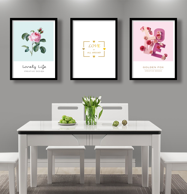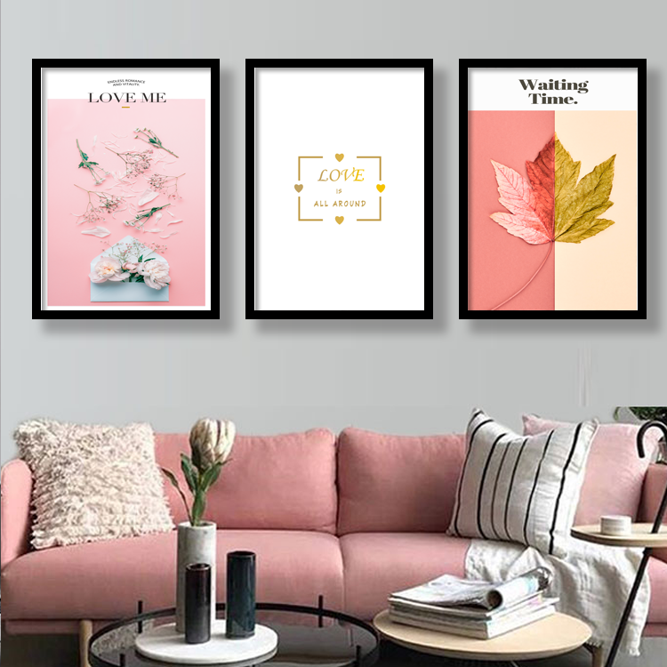 Small frescoed Xuanguan Decorative Mural Nordic-Like Board Room Girl Hearts Pink 3D Flower Living room Warmth Hanging Paintings