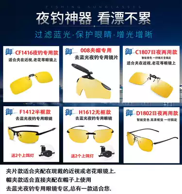 Clip night fishing lens C13113 clip type day and night dual lens C1807 clip cap special eye lens 008 to blue light night fishing special glasses F1412 half frame D2026 (