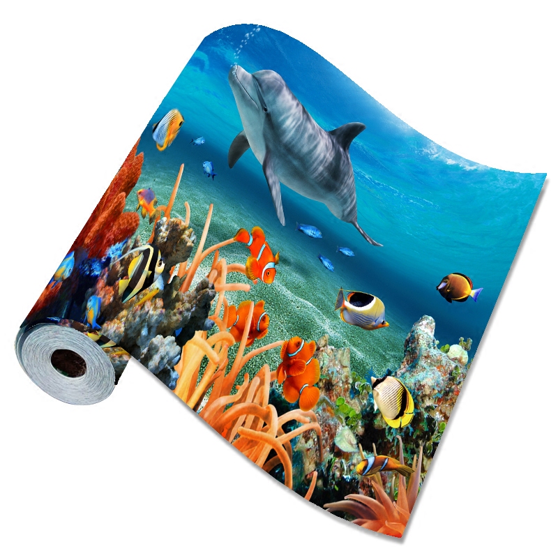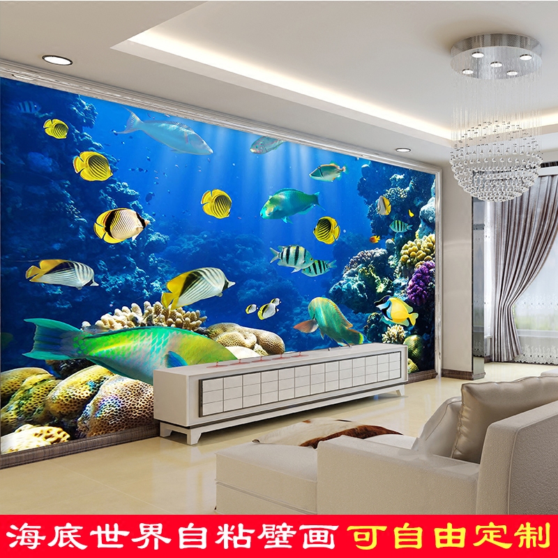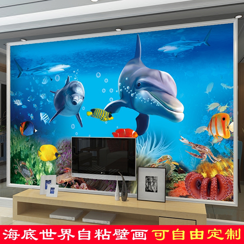 Waterproof Self-adhesive wallpaper 3D Submarine World Wall Wall Sticker Painting Themed Hotel Swimming Pool Dolphin Marine Background Wall Mural