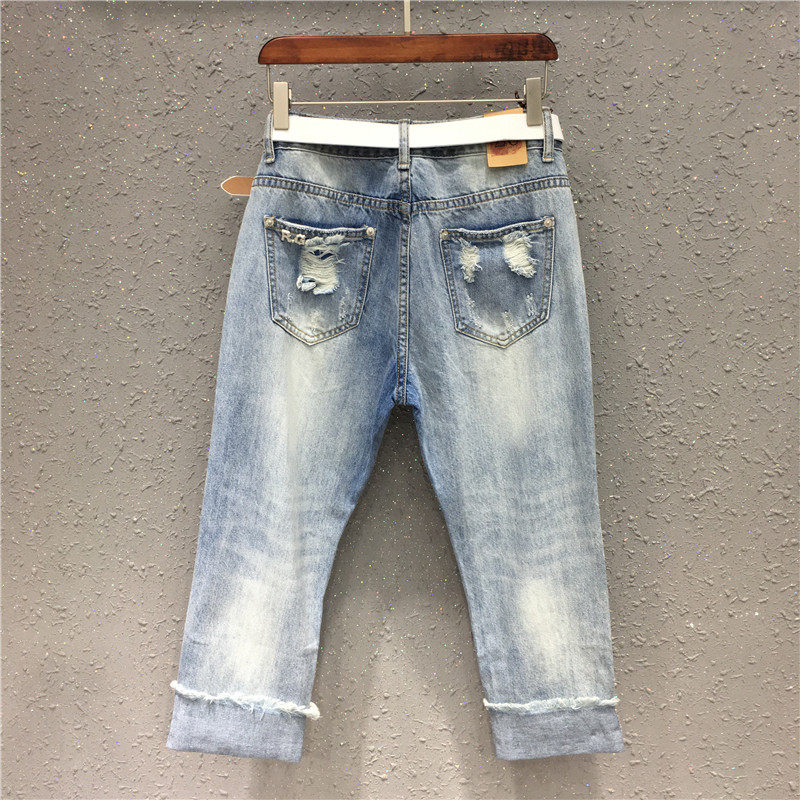 Light Color Khalen Jeans Woman Breaking Hole 2022 Spring Loaded Loose New 100 Hitch 90% Pants Straight Barrel Pants Autumn Seven Pants