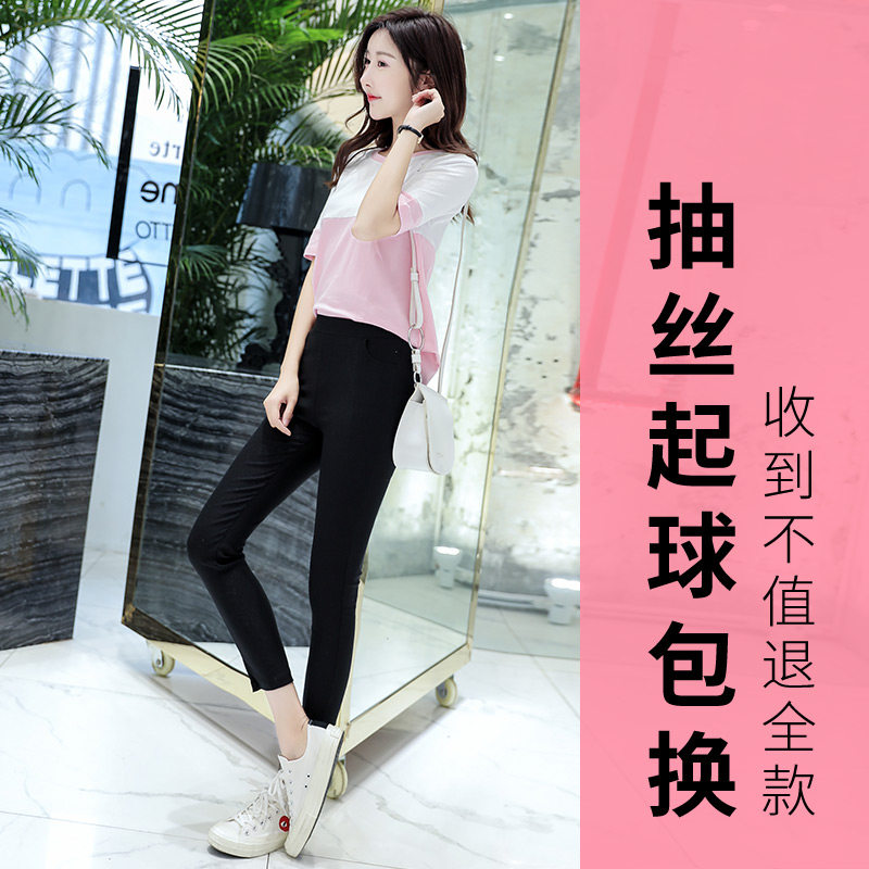 Fat plus size inner pants Women's small black pants spring and Autumn eight-point thin small feet black pants elastic split outer wear