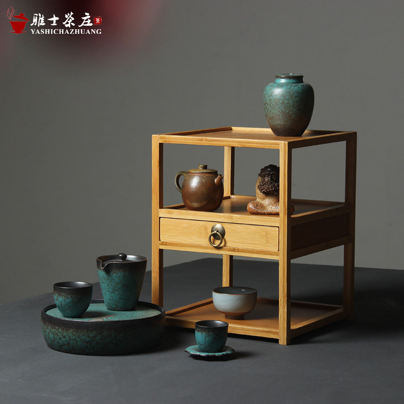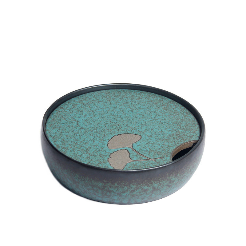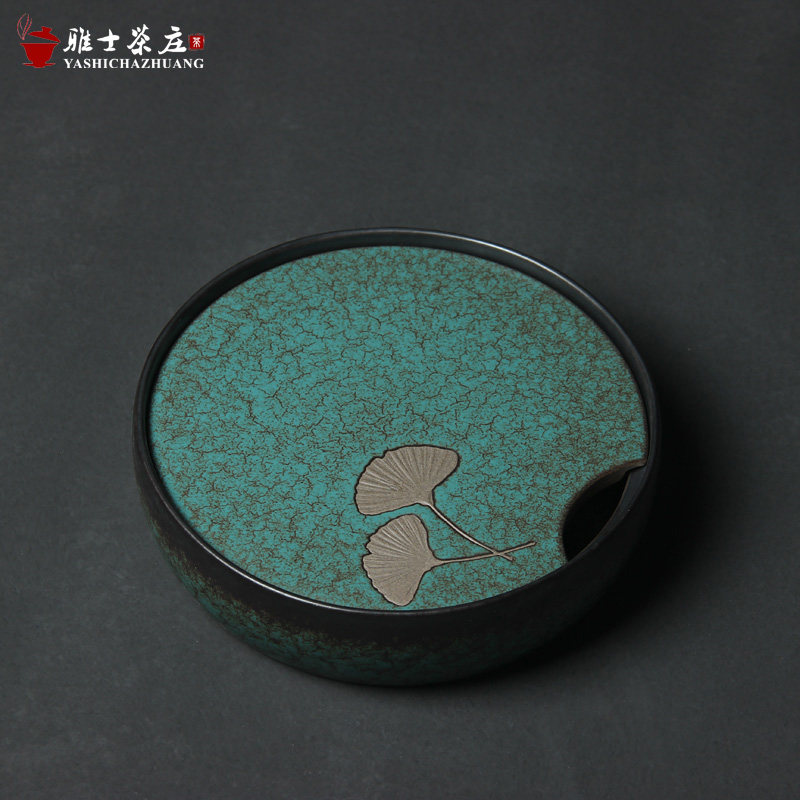 Coarse Pottery Apricots Leaf Tea Tray Day Style Brief About Dry Bubble Table Round Water Storage Small Tea Table Ceramic Kutian Tea With Kettle Bearing