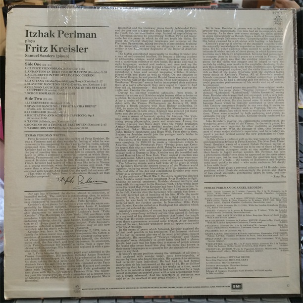Perlman Plays Chrysler Violin Collection Vinyl LP