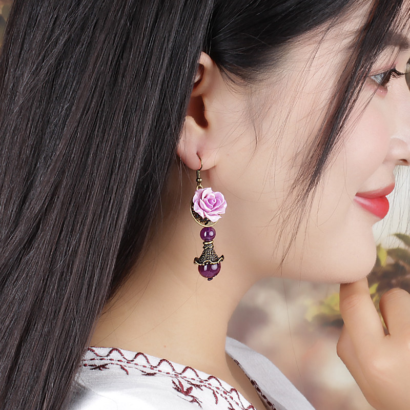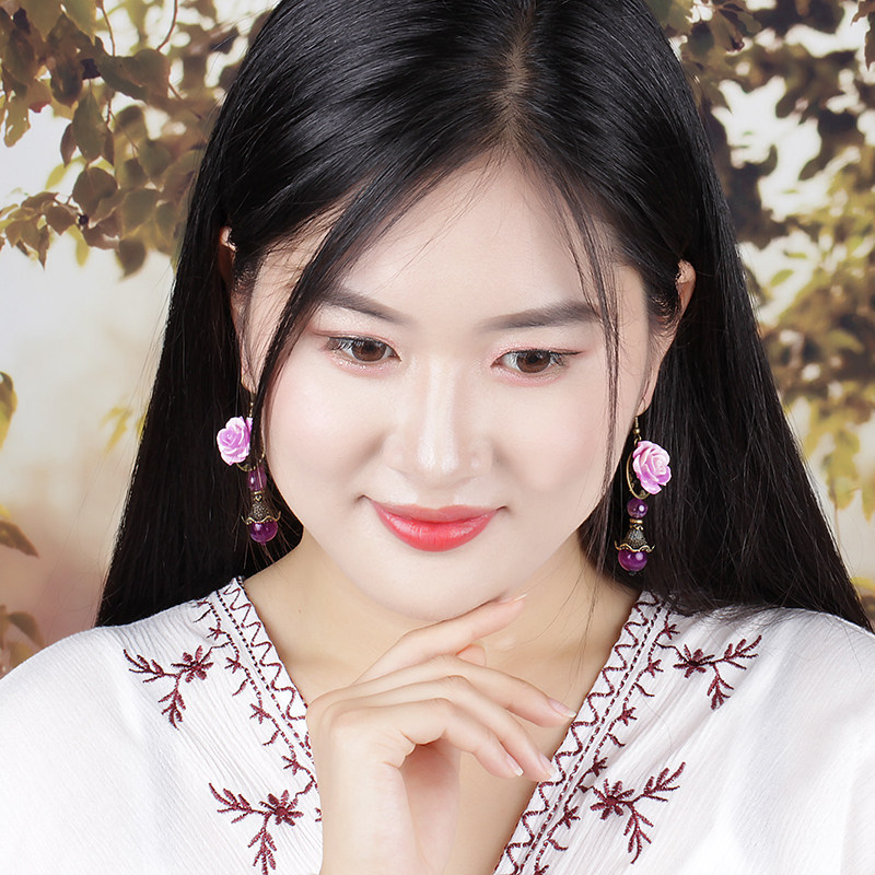 2021 earrings jewelry female ear clip national style quality Chinese style flowers opal jewelry drop earrings earrings vintage