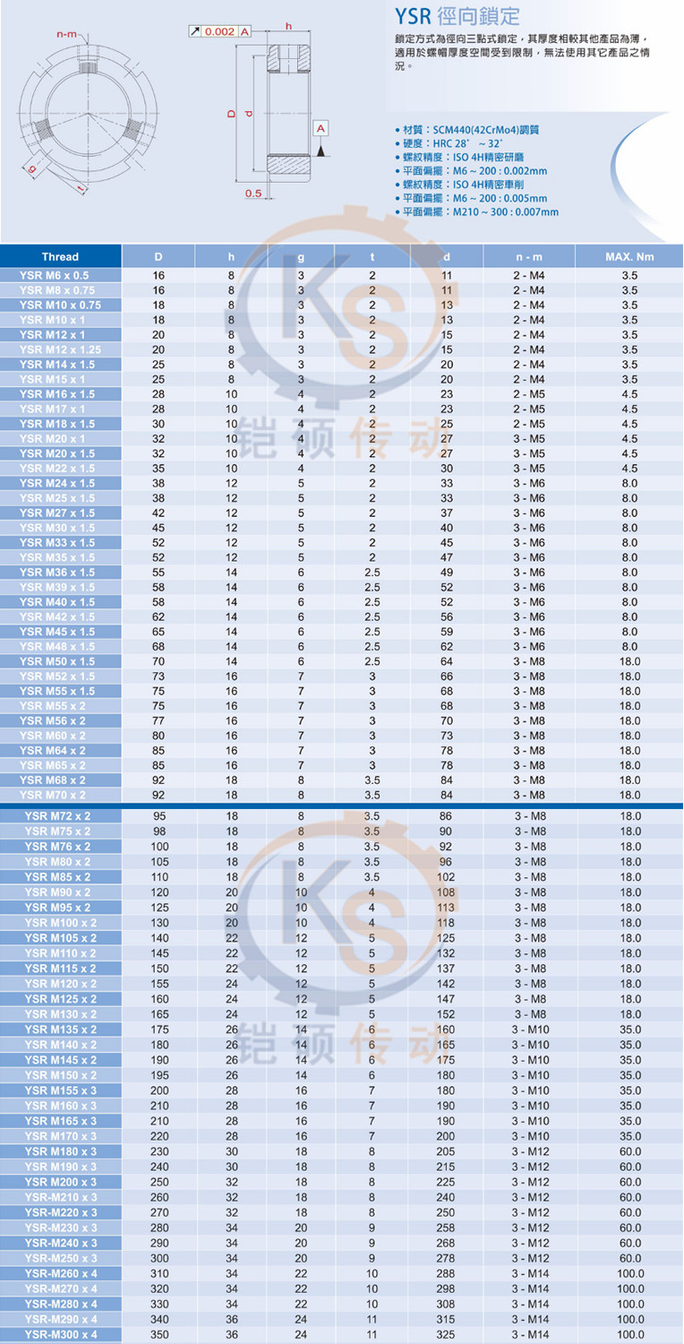 YINSH Taiwan Ying Tin Precision Lock nut YSR M6 ~ M36 CNC spindle screw lock nut