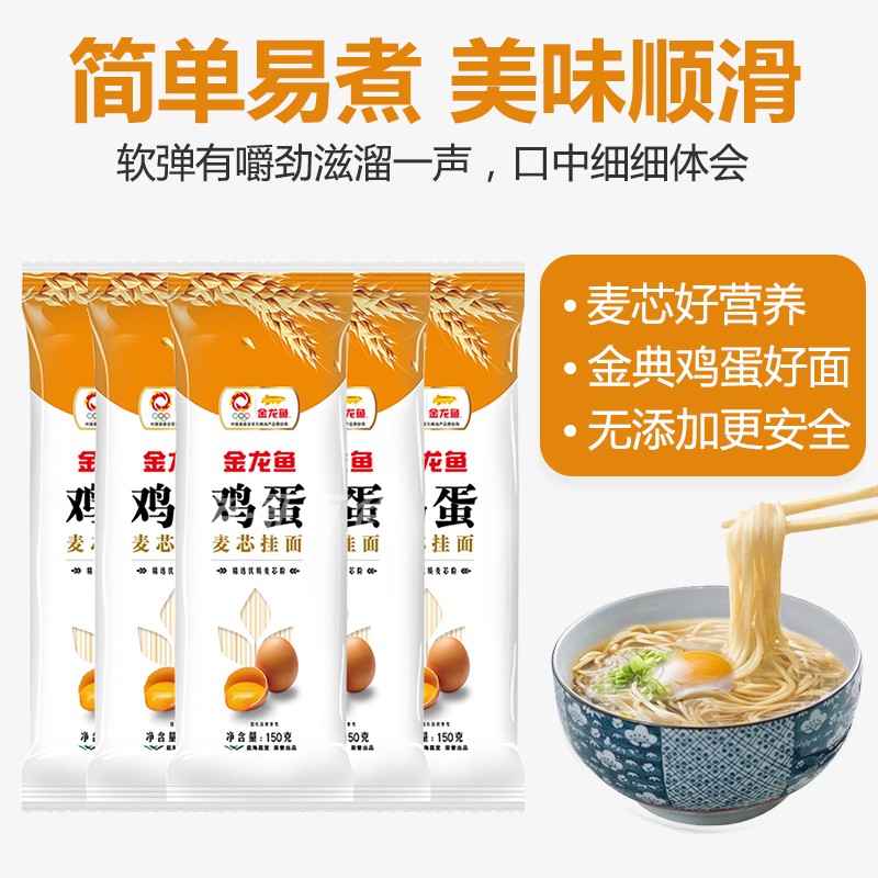 Golden Dragon Fish Wheat Core Eggs Hanging Noodles 150g Bagged Fine Strips Instant Noodles Instant Noodles Longevity Noodle Gift