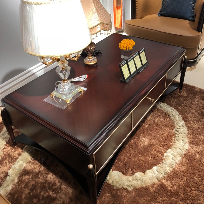 Eurostyle tea table solid wood tea table neoclassical rectangular tea table minimalist carved flower storage tea table living room furniture