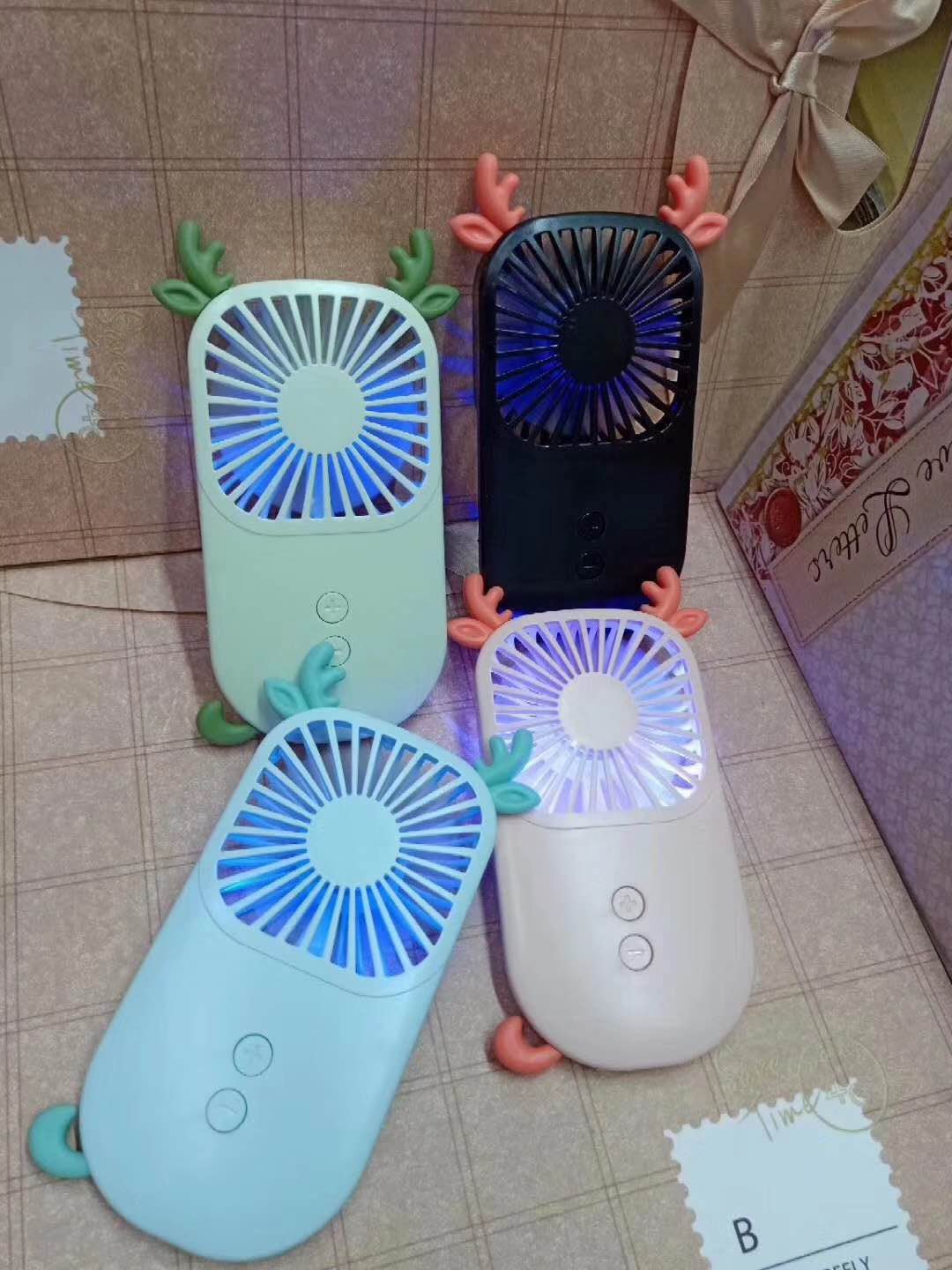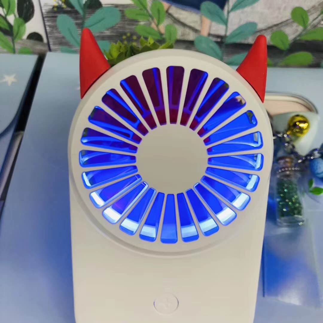 Shake sound small fan night light cartoon devil ultra-thin handheld USB fan pocket portable with charging small electric fan 3rd gear