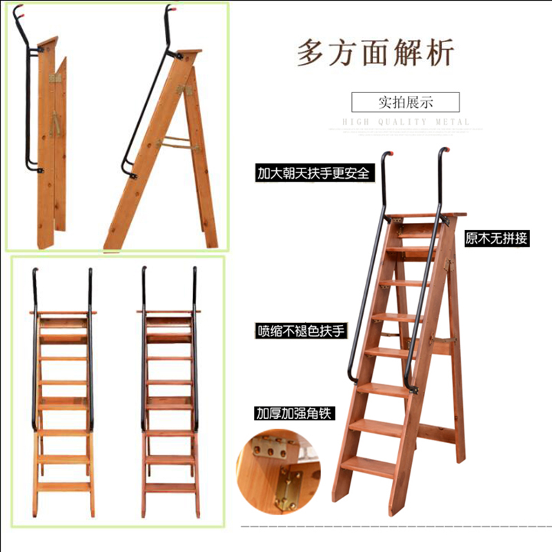 Solid wood home decoration mobile folding single-sided herringbone ladder indoor and outdoor climbing ladder thickened multi-functional attic stairs
