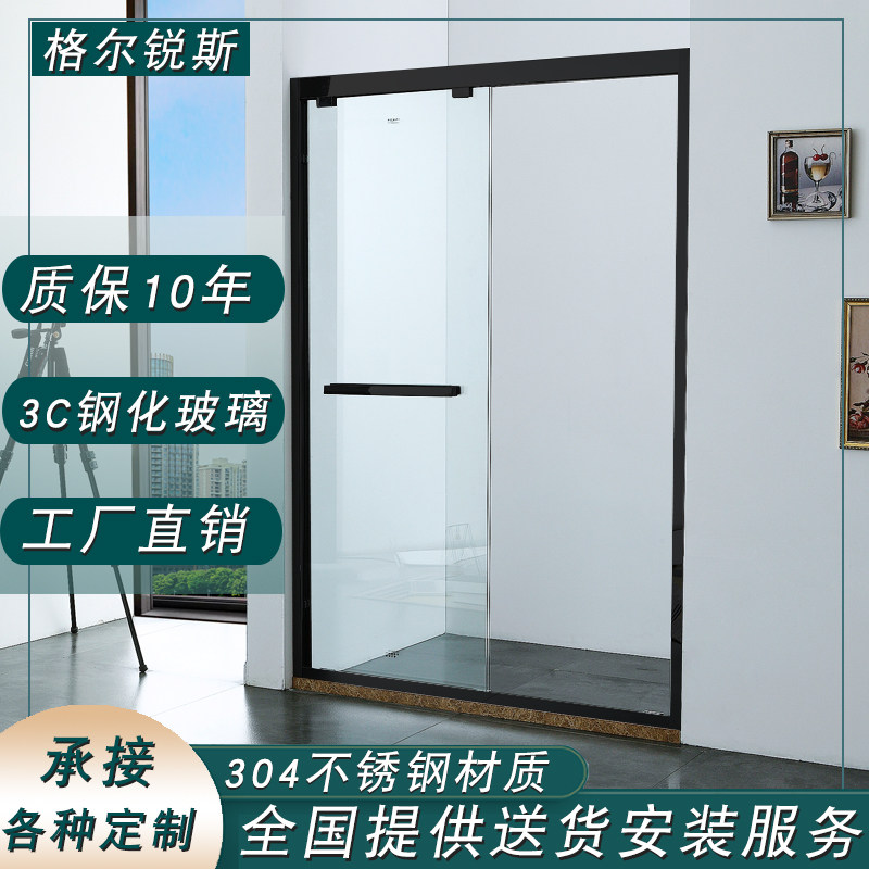 Custom 304 stainless steel shower room I-shaped dressing room mobile door bath room Easy partition tempered glass door