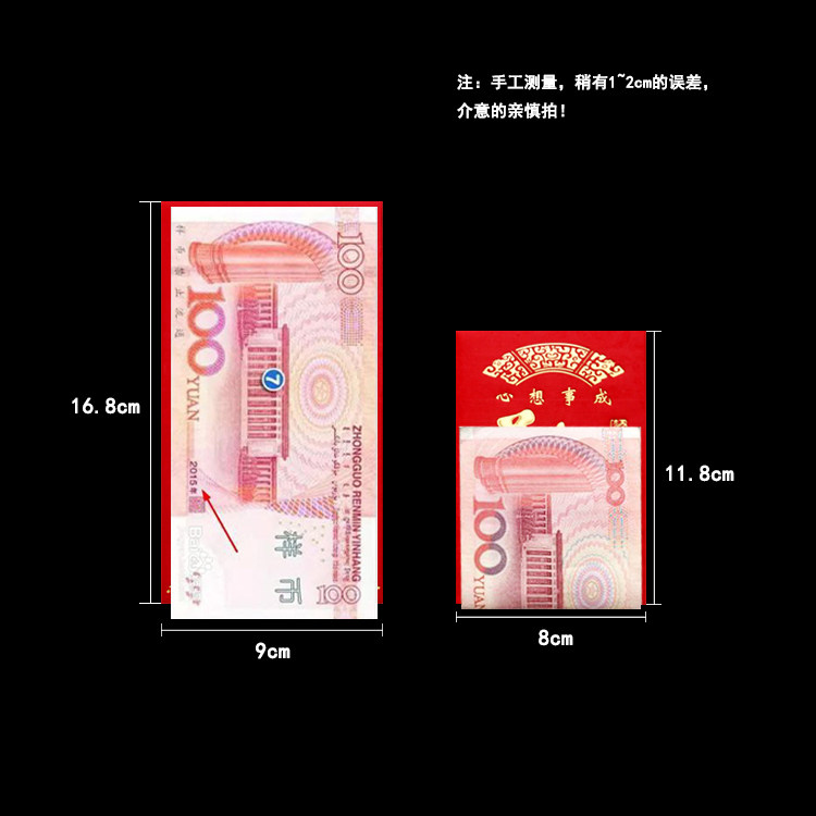 108 108 RMB100 red packets (to put money in folio) 60 RMBone thousand red packets (RMB100 can be placed directly) 30 large numbers 30 small number red packets