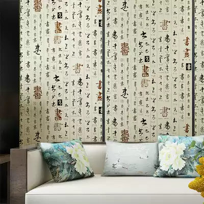 Office study living room TV background wall Chinese wallpaper wallpaper classical Chinese style retro style tea house atmosphere