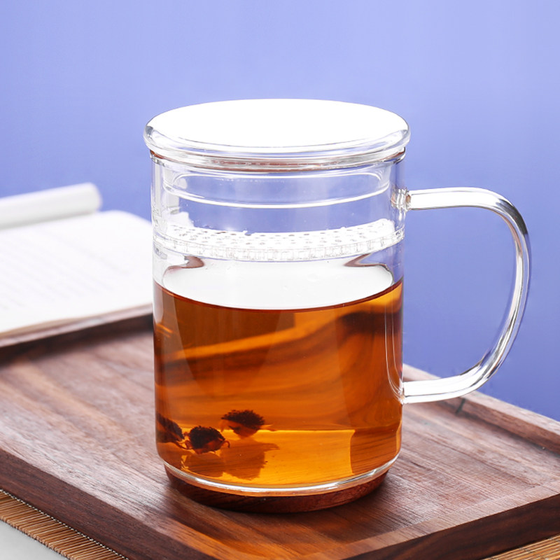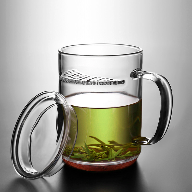 Transparent Crescent Cup glass green teacup comes with filter tea cup office with lid for men and women's water Cup home