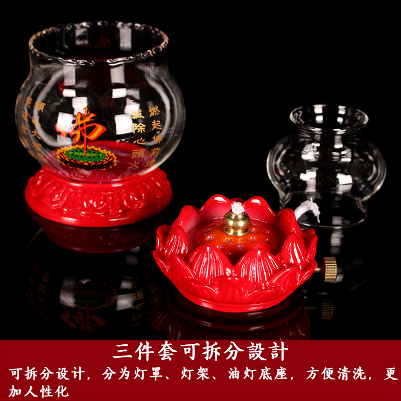 Buddha Front Lotus Dimming Oil Lamp Glass Resin Windproof Lamp Shade Home For Buddha Lamp Ghee Lamp Wick Buddhist Supplies