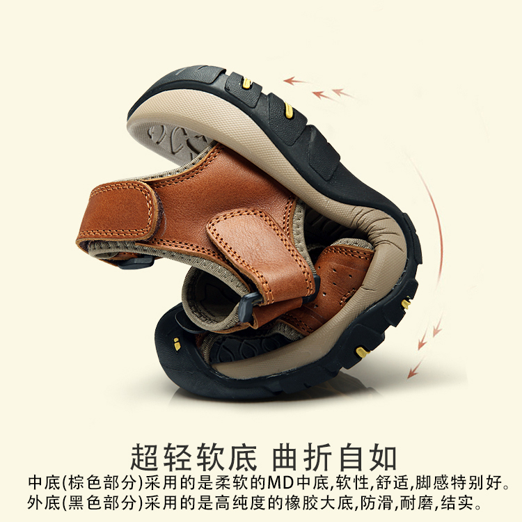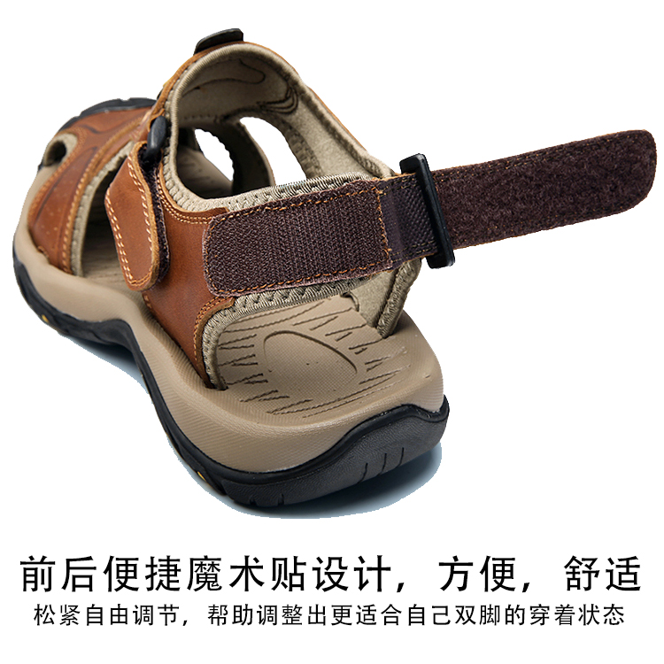 Western Regions Camel Sandals Men's 2022 Summer New Leather Baotou Beach Shoes Outdoor Sports Breathable Casual Shoes