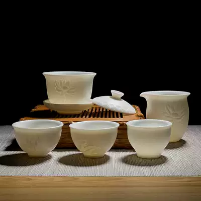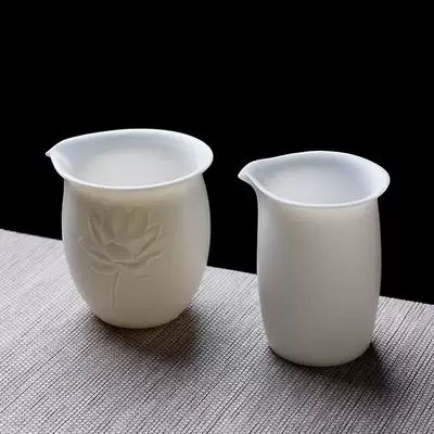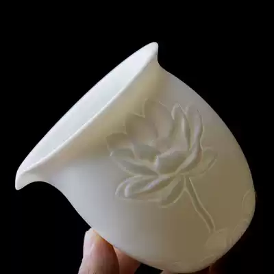Handmade white porcelain fair cup embossed lotus Japanese Kung Fu tea set Ceramic accessories Tea splitter Inverted teacup Household
