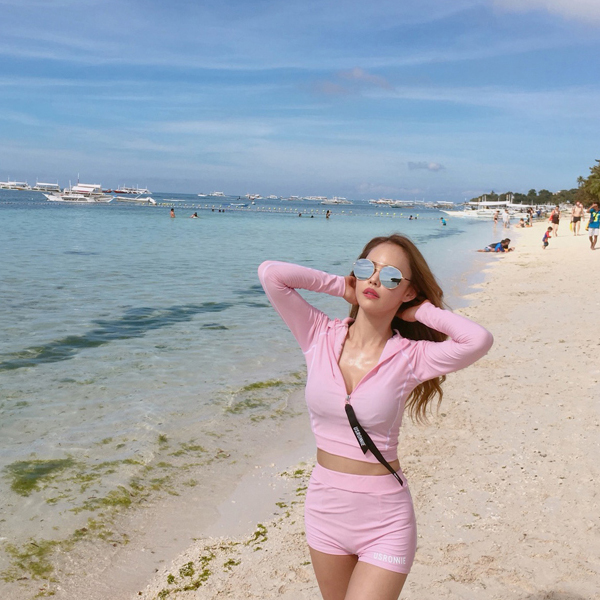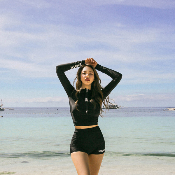 South Korea's new sexy split zipper suit hot spring long-sleeved sunscreen high waist cover belly slim jellyfish snorkeling swimsuit