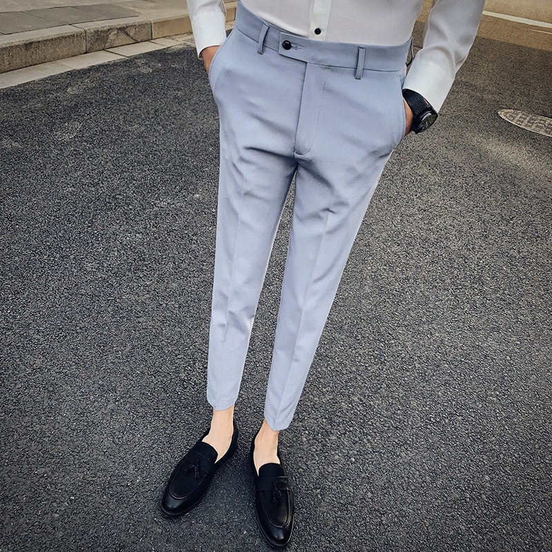 Cropped pants men's pants slim casual pants men's pants men's British small leg pants Korean version trend trousers men's 9 minutes pants