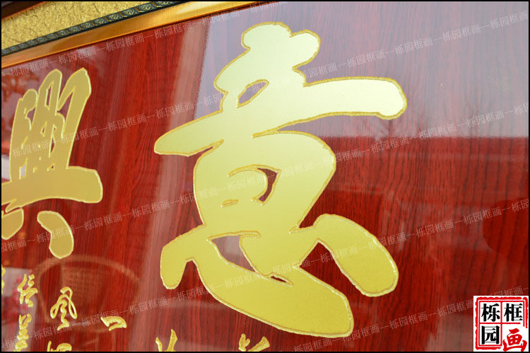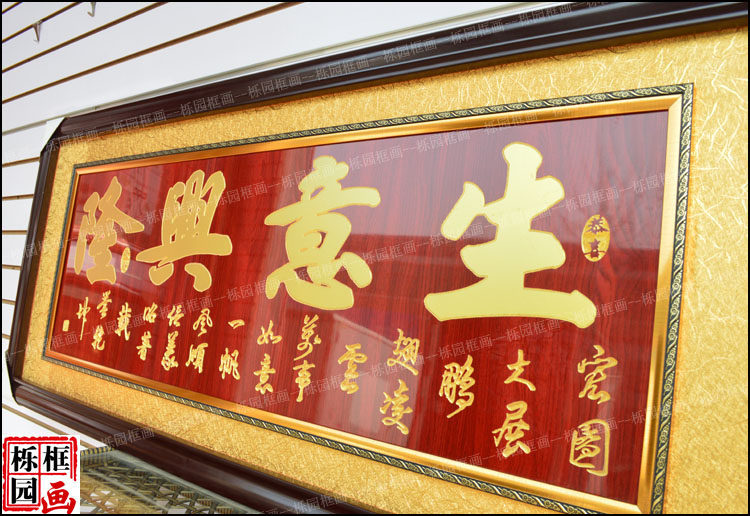The company's opening plaque, gold-character woodcarving business is booming, the inner board wrapping the plaque