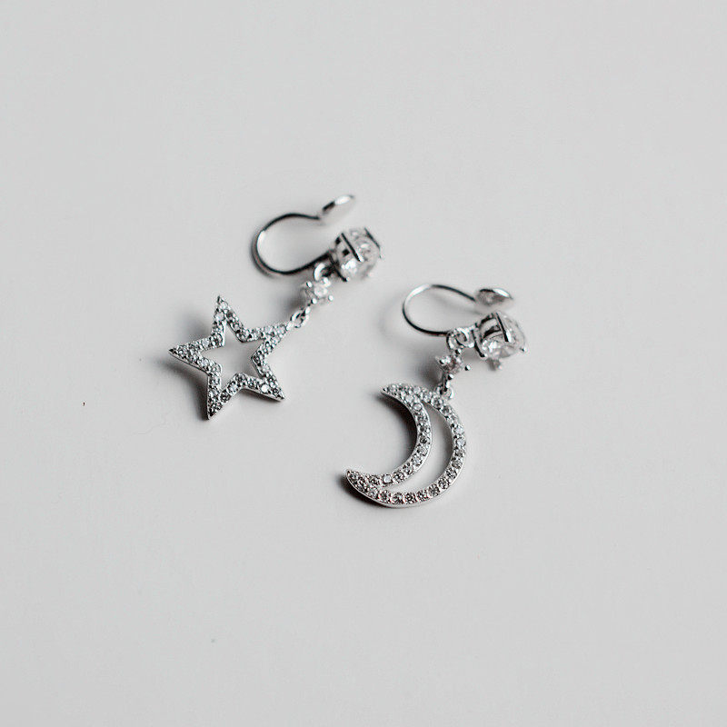 925 silver star ear clip female no ear pierced earrings Female retro Hong Kong taste French high-class sense student niche elegant section