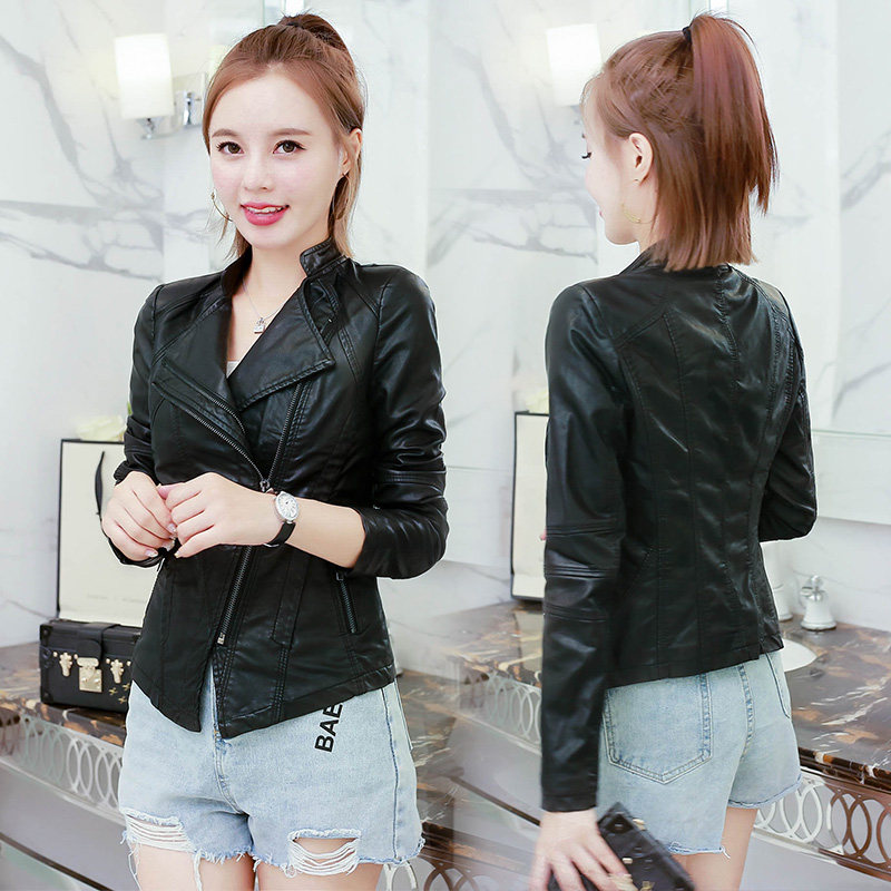 Leather jacket women's small men's 2022 autumn and winter new Korean version slim fit motorcycle clothing PU leather jacket tide