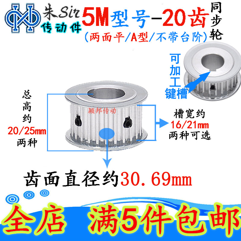 HTD 5M20 teeth synchronous wheel AF two-faced flat groove width 16 21mm plus reduced speed stepping motor motor transmission wheel