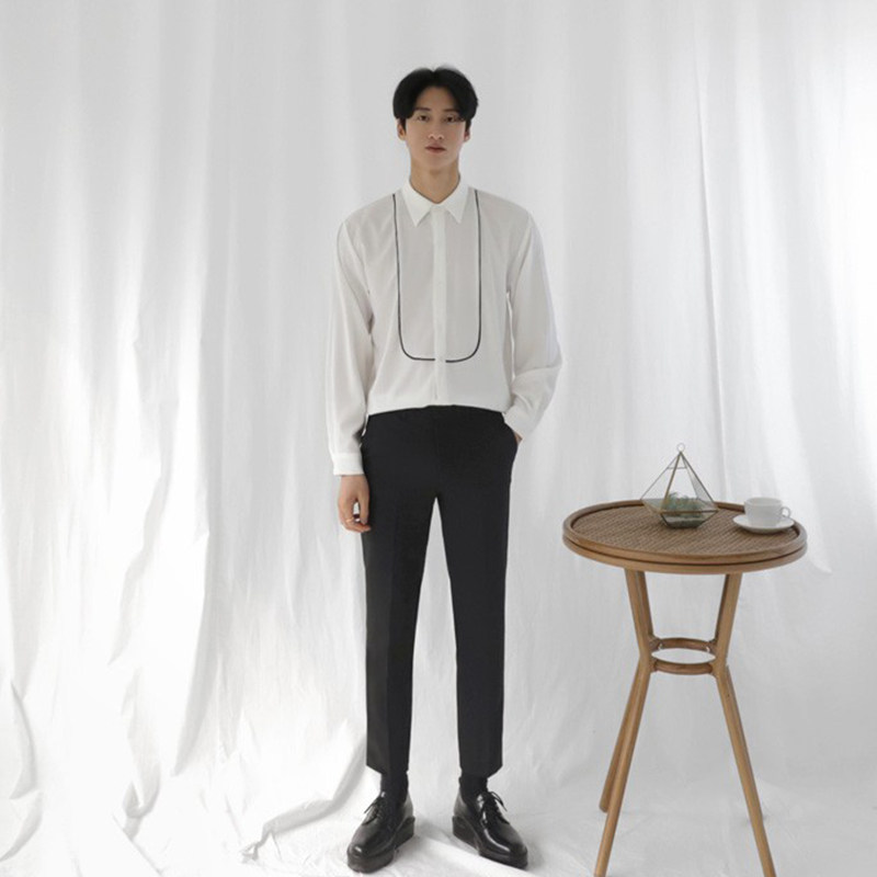 2021 Spring autumn season Korean version white shirt men's body casual linen youth men stand long sleeves shirt tide