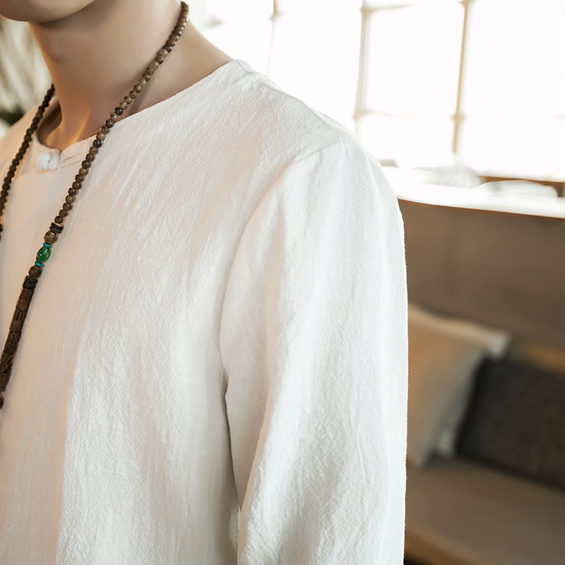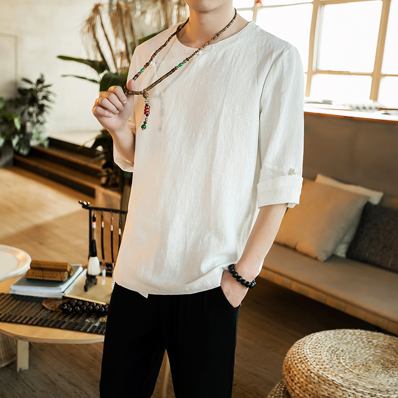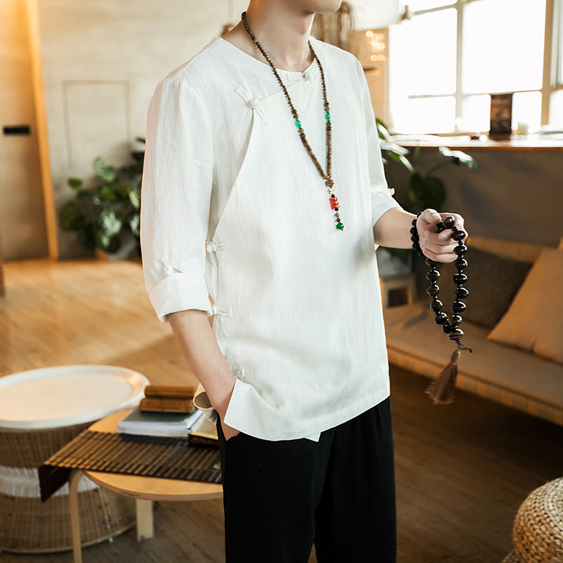 Chinese style Tang suit linen disc buckle improved hanfu Chinese wind men's clothing retro style cotton linen short sleeve blouse youth ancient dress