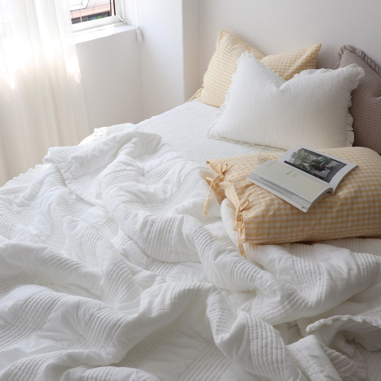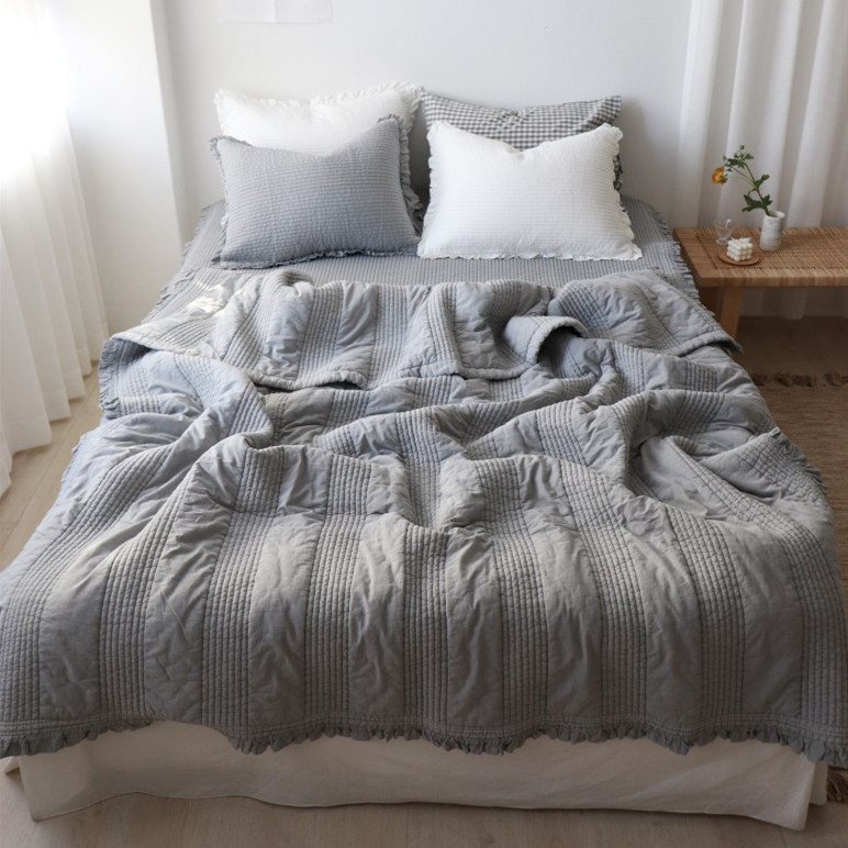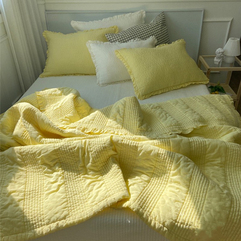 Aika Korean ruffles soft solid color water washing cotton summer cool quilt air conditioning quilt pillow sheet