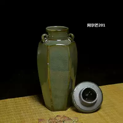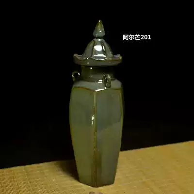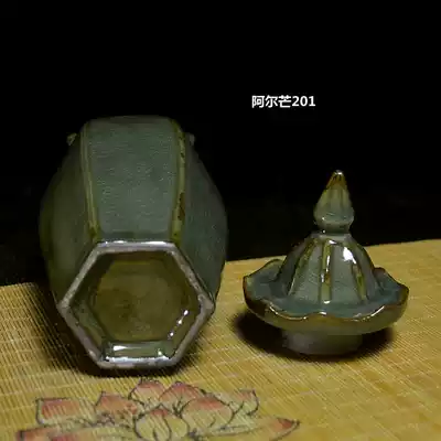 Longquan kiln old plum Ziqing antique retro firewood kiln set burning Bo ancient frame decoration decoration decoration six-sided general bottle