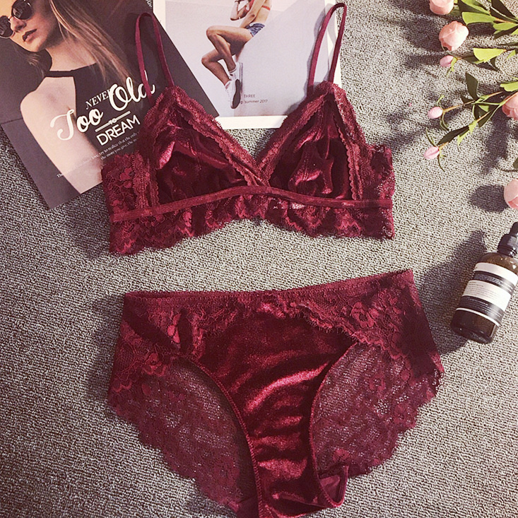 French bralette Ultra-thin Velvet Non Steel Coil Trigonometer Lightwear Lace Sexy Beautiful Background Breath Sex