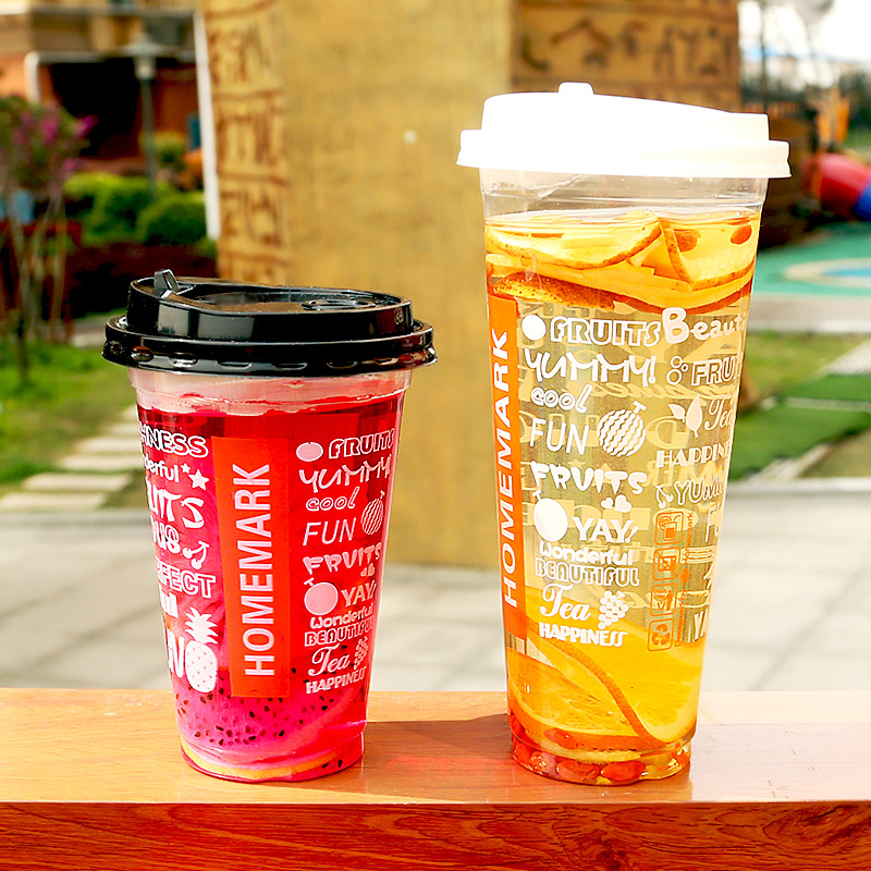90 caliber disposable plastic cups 500 600 700ml cold drink juice drinks milk tea packaging cups 500