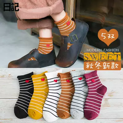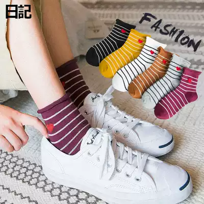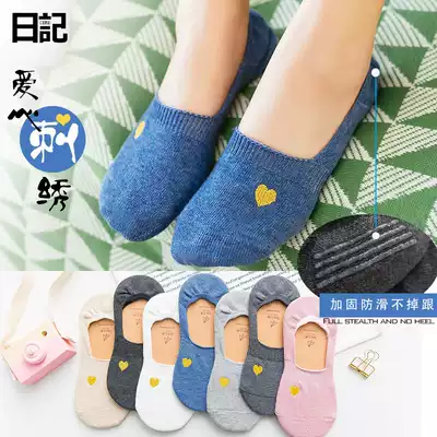Socks women's cotton socks autumn non-slip invisible socks short socks trend love embroidery short tube college style autumn mid-tube socks