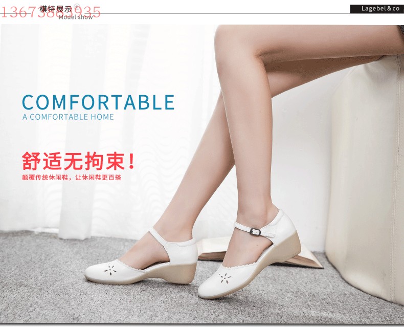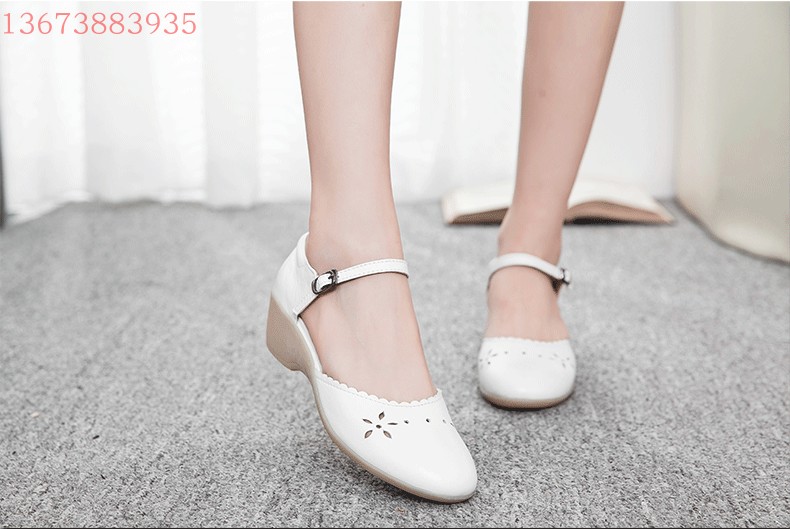 First layer cowhide spring and summer nurse shoes white wedge four seasons shoes beef tendon bottom comfortable leather work non-slip women's shoes