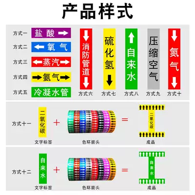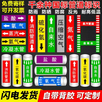 Pipe identification card Car label sticker sticker flow to fire protection industrial medium marking arrow Water supply pipe Compressed air warning custom waterway water inlet tap water vapor return water tape label custom