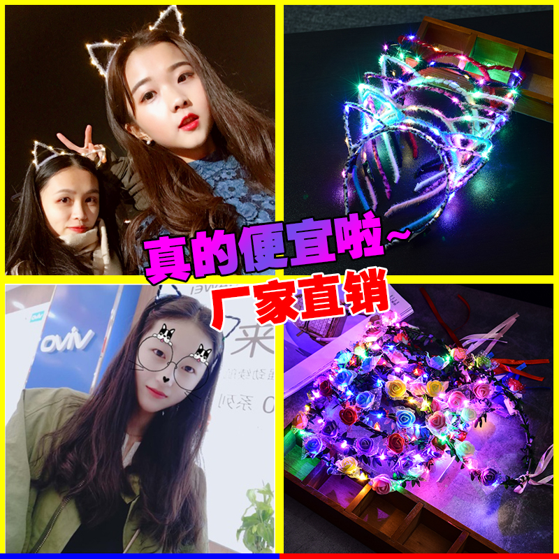 Luminous toy feather feather ear decoration net new kindergarten children flashing hoops to push girls gift