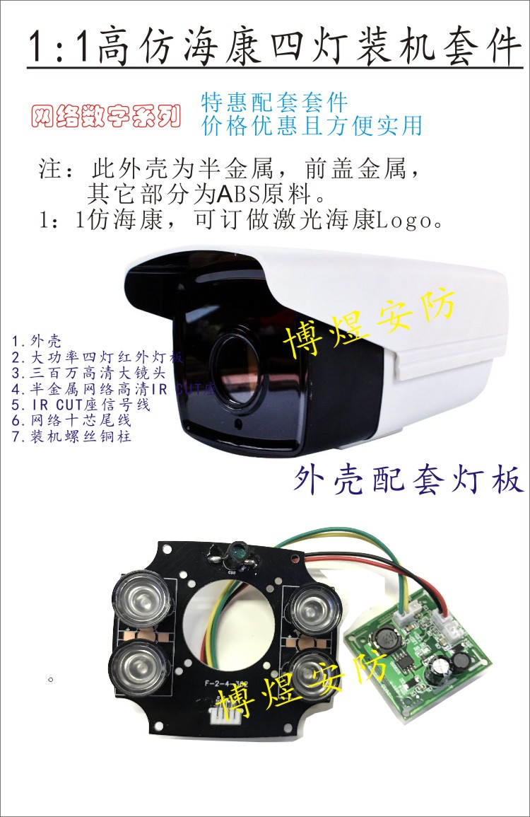 Surveillance camera head semi-metal 90 shell array four-lamp infrared light board network complete set of assembly