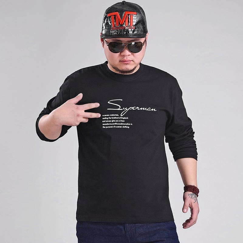 Large size casual male pure cotton long sleeve T-shirt plus fattening up fat sub loose autumn coat large number round neck T-shirt