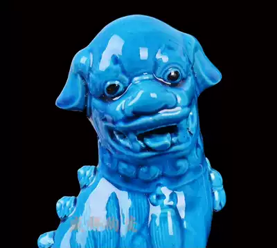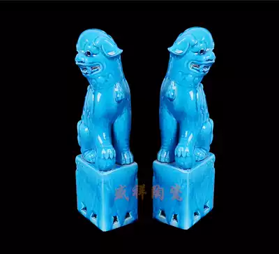 Jingdezhen home decoration high temperature sculpture porcelain factory goods antique porcelain peacock blue lion nostalgia
