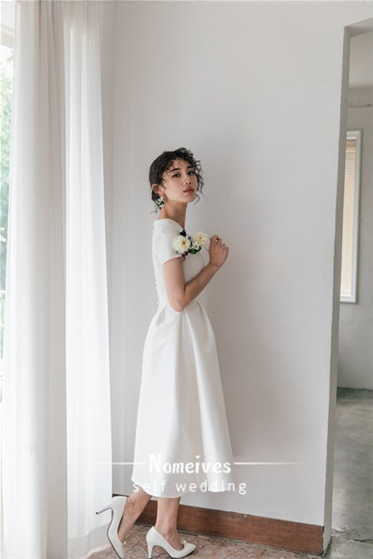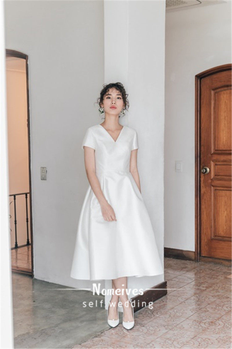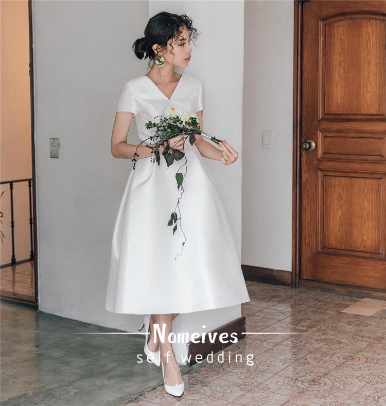 Cherry Blossom Grass] New Fresh And Simple Satin Shorts Light Wedding Dress Outdoor Brigade Slapped Light Wedding Dresses Retro Light Gown