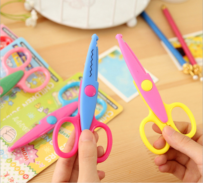Children's lace safety scissors hand DIY photo scissors photo card pattern cut photo shear