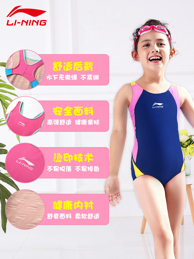 Li Ning children's swimsuit girls girls professional training one-piece quick-drying small, medium and large children's hot spring waterproof swimming equipment