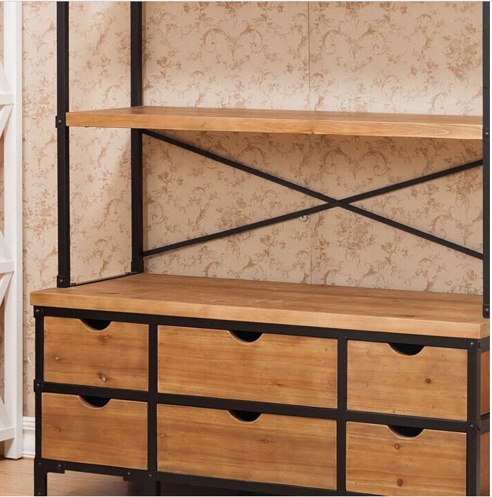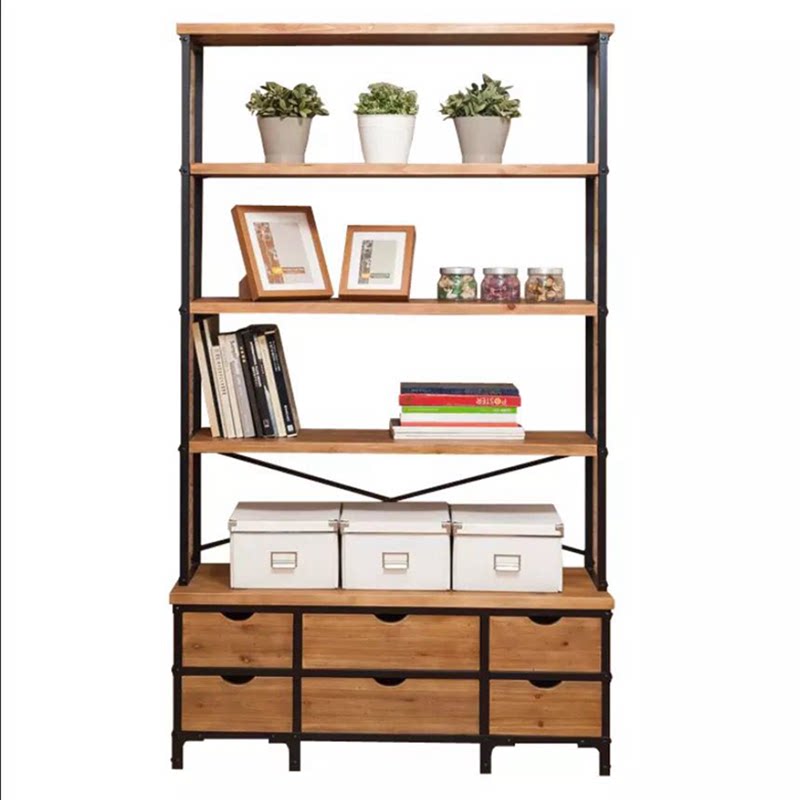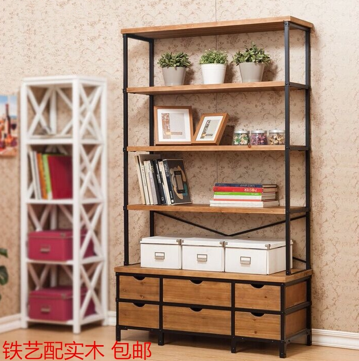 loft American retro bookshelf wrought iron bookcase solid wood shelf floor multi-layer living room industrial style creative assembly