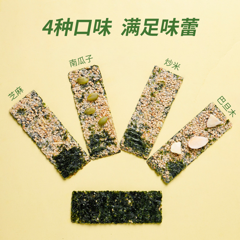 Sesame sandwich seaweed crisp 250g X 2 bags Coconut sandwich seaweed crisp 250g X 2 bags Badan wood sandwich seaweed crisp 250g X 2 bags Pumpkin seed sandwich seaweed crisp 250g X 2 bags Fried rice